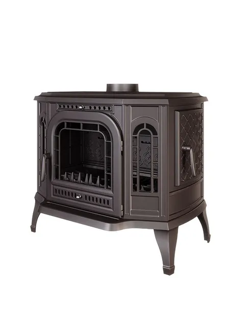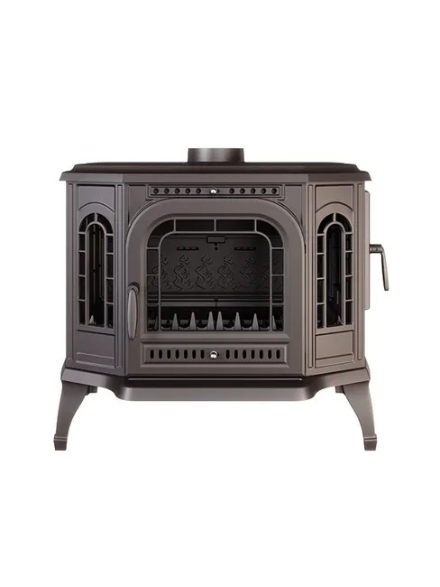 Poêle autoportant en fonte 10,5 kW, avec double ouverture (avant et côté). Chauffe jusqu’à 105 m² avec un rendement de 73,5 %. Design robuste et fabrication européenne de qualité.